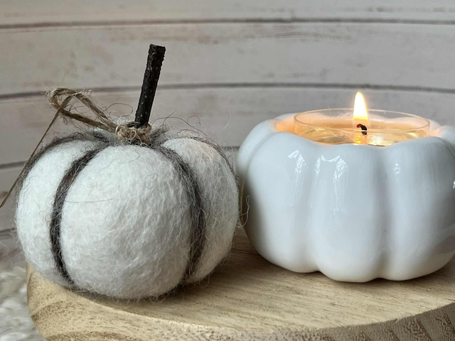 Elevate your Autumn decor with our adorable needle-felt pumpkins. Handcrafted from orange and natural wool felt, this cute autumn decoration features intricate detailing and a charming wooden stalk for added authenticity. Perfect for creating a cosy seasonal atmosphere in your home, this charming pumpkin is a must-have for anyone looking to add a touch of warmth and charm to their space. Whether displayed on a mantle, shelf, or coffee table, this needle-felt pumpkin is sure to bring a smile to your face all season long.