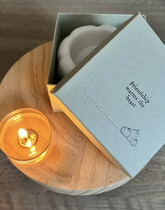 Pumpkin measures approx 7.5 x 7.5 x 4cms and comes in it's own cute box with one of our long lasting seasonal tealights.