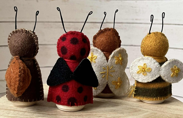 The gorgeous little wooden bugs are made wearing felted capes with cotton thread bow, small clear beads and makers wire antenna. Please note these are NOT suitable for play and should not be left with small children or pets. They are intended solely for decorative purposes only.