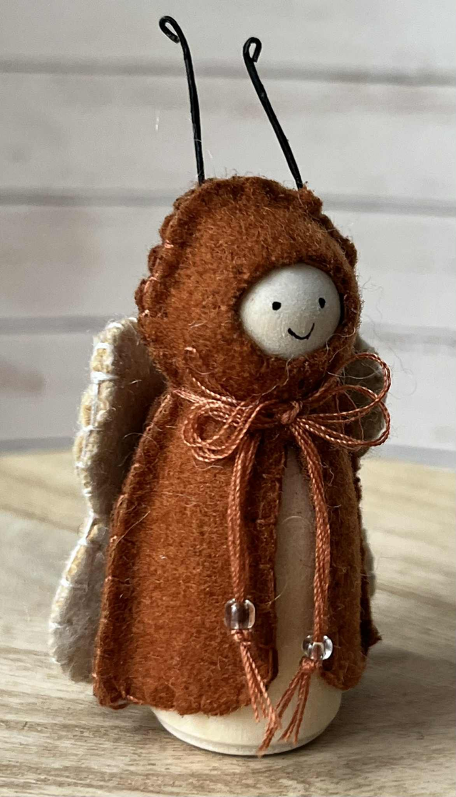 Add a touch of charm to your autumn décor with our adorable felted Woodland Bug Peg Doll. Handmade with care, this cute woodland creature is perfect for adding a whimsical touch to your seasonal displays. Made from high-quality felt, this peg doll will bring a cosy and inviting atmosphere to your home. Whether displayed on a shelf, table, or mantel, this felted bug is sure to delight guests and bring a smile to your face. Perfect for nature lovers and those who appreciate unique, handcrafted décor pieces, this bug peg doll is a must-have for the cosy Autumn season.