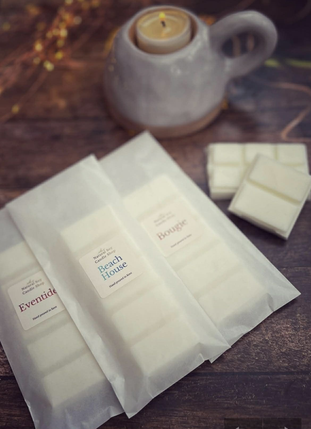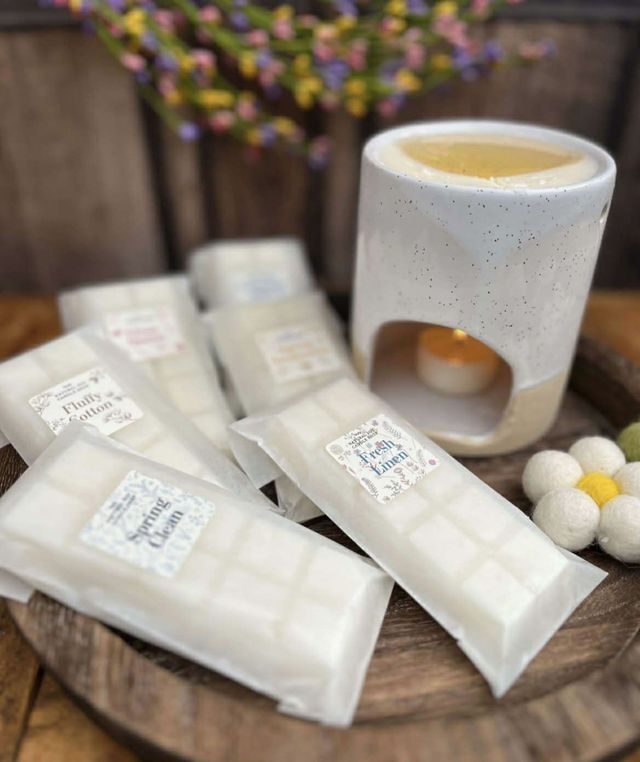 Highly fragranced soy wax melt snap bars. Available to purchase as a single bar, or four different fragrances. Just select your scents from the menu below and send a message at checkout with your choices.